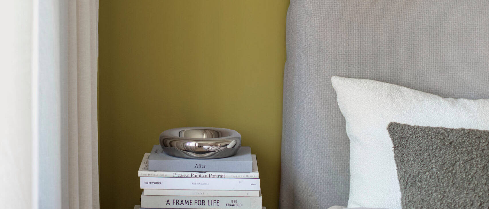 Den gulgrønne farve fortsætter udviklingen mod en mere udtryksfuld og nuanceret palet. Den kan fungere både som base og som accent og opleves forskelligt afhængigt af lys og kontekst – et aspekt, der gør den anvendelig i alt fra boligprojekter til kommercielt interiør.